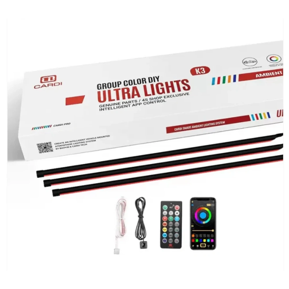 The CARDI K3 Active Ultra 18-Piece Kit brings your car interior to life with vibrant color, rhythm-based illumination, and luxury-grade design — the ultimate blend of tech and style.