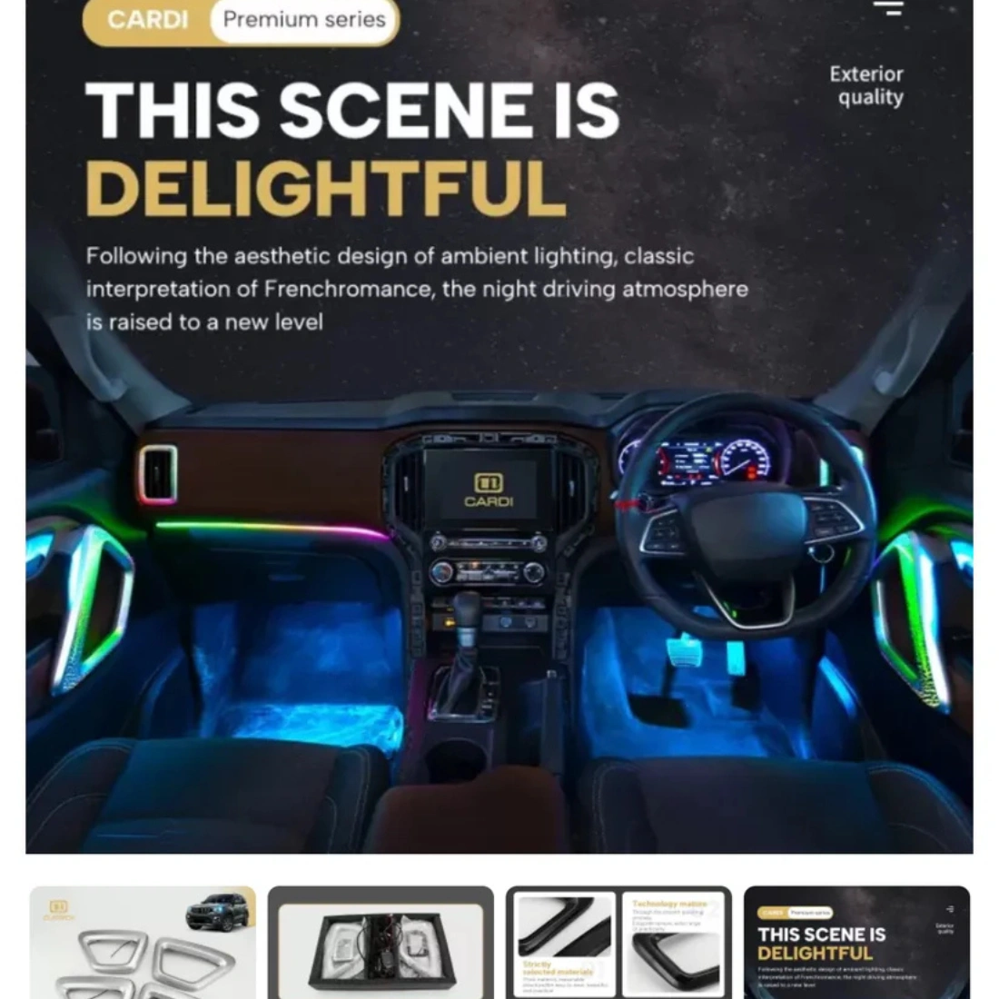 The CARDI K4 OEM Ambient Light Kit transforms your Scorpio N interior with elegant silver accents and customizable ambient lighting — giving your SUV a true premium look and feel.