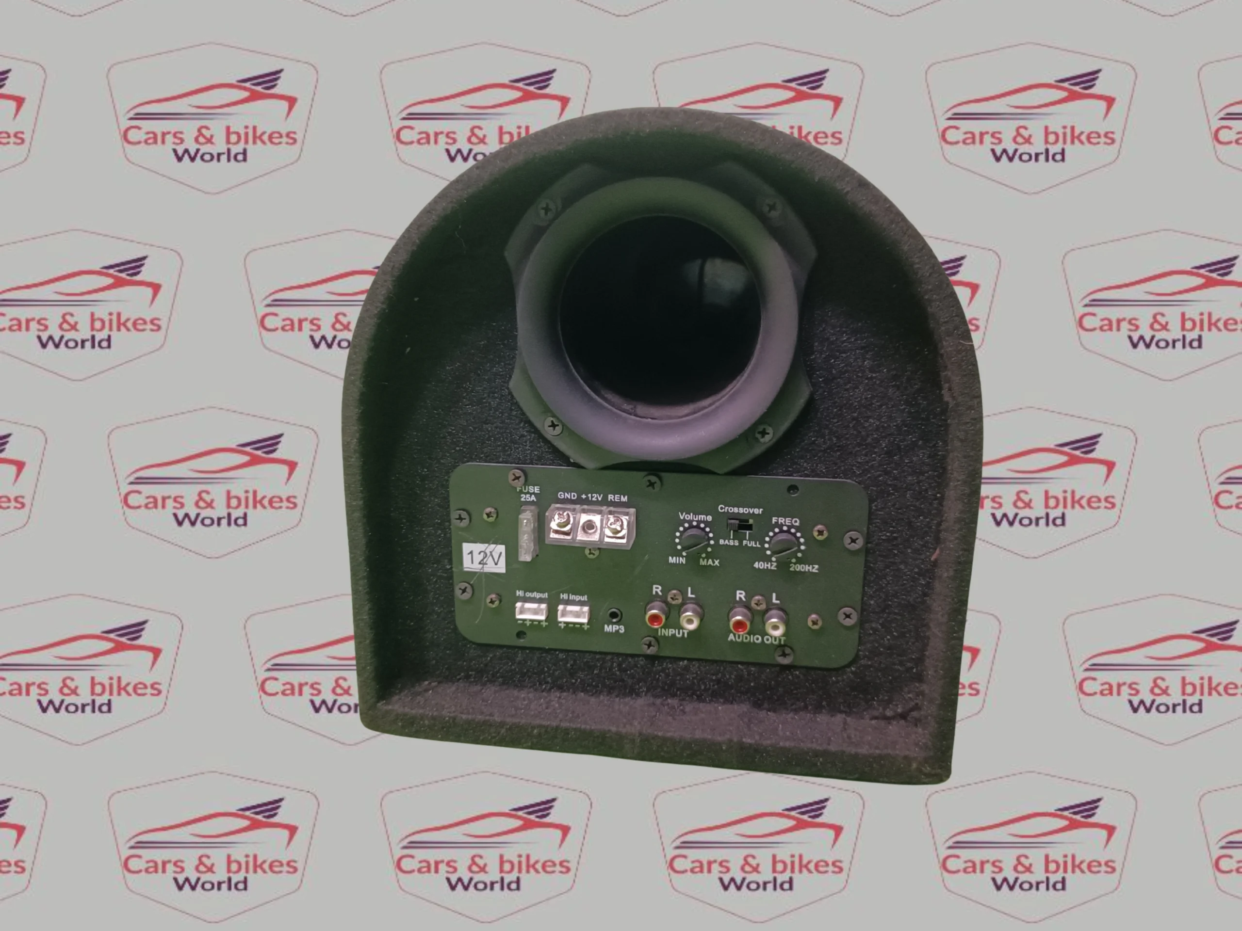 • Advanced Sound Control: Includes a rear-mounted control panel with adjustable volume, crossover settings, and frequency tuning (45Hz – 200Hz).